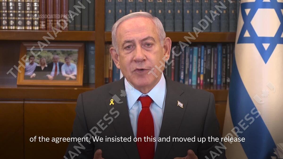 Israeli Prime Minister Benjamin Netanyahu welcomed the release of three hostages as part of the ceasefire agreement with Hamas militants and said he expected the next release to take place in a similar "safe manner."