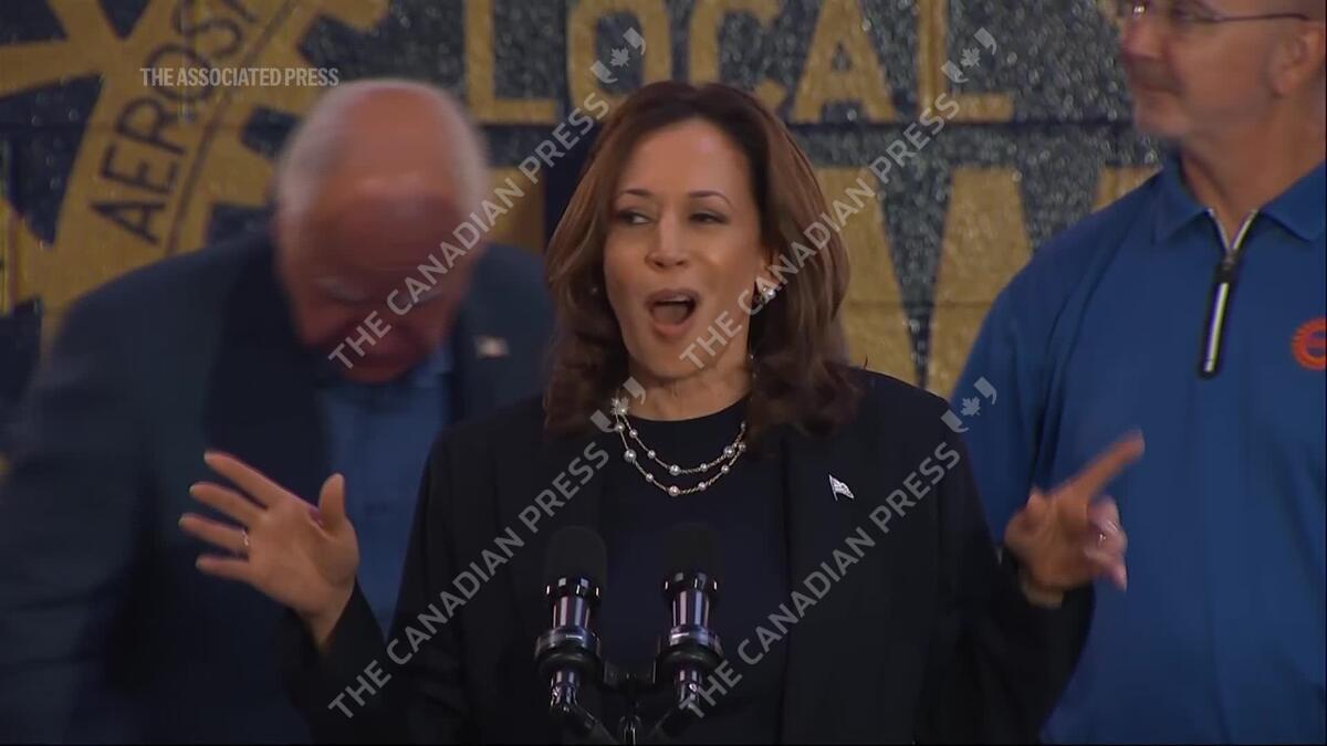 Vice President Kamala Harris and her running mate, Tim Walz, are showing their support for organized labor by appearing at a Detroit-area union hall. Harris, the Democratic presidential nominee, and Walz spoke to United Auto Workers members.
