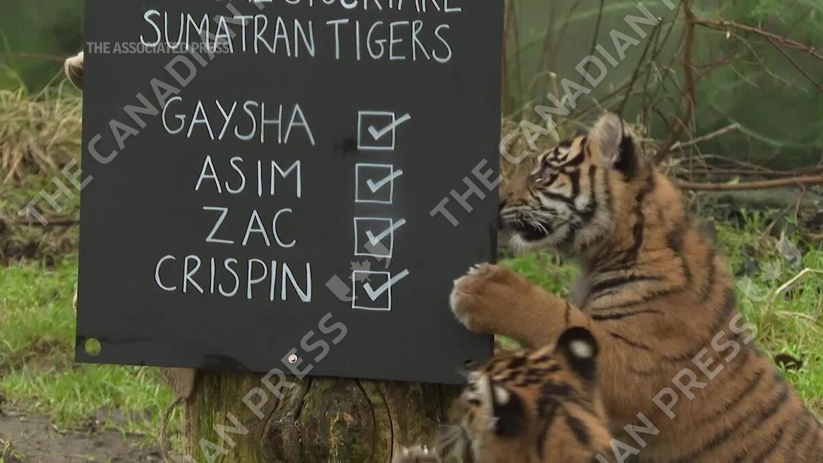 Staff at ZSL London Zoo are busy with their annual headcount of the park's animals, which includes two critically endangered Sumatran tiger cubs. (Jan. 3)