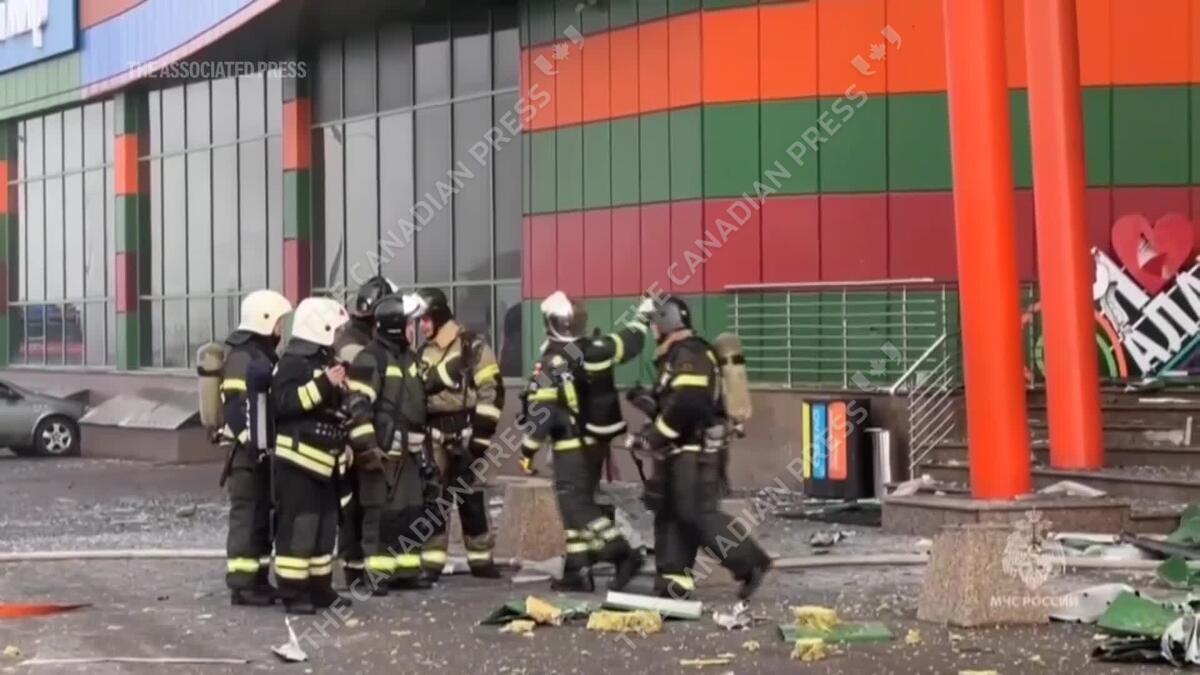 Firefighters put out flames after falling debris from a downed Ukraine drone sparked a fire in a shopping mall in the city of Vladikavkaz in Russia's North Ossetia, according to authorities.
