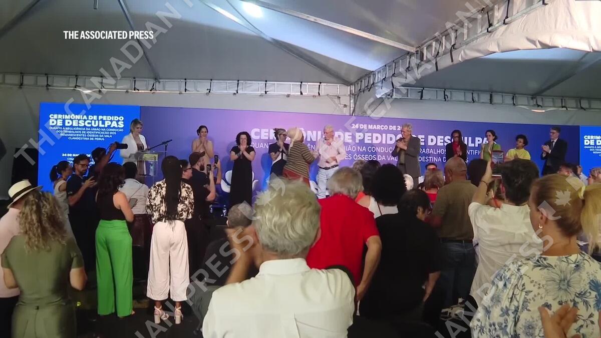 Brazil’s government on Monday apologized to families of victims of the country’s military dictatorship whose remains could be among those found in a clandestine mass grave 35 years ago. (AP video shot by Maycron Abade and Thiago Mostazo)