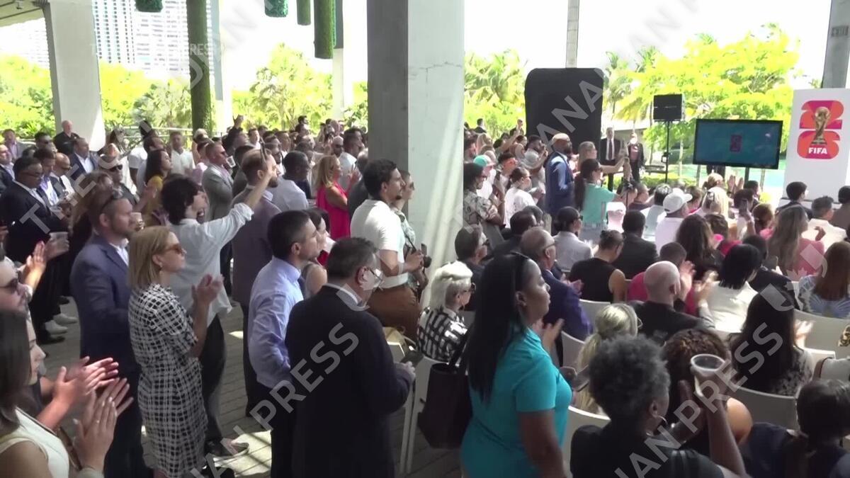 Elected officials and representatives of FIFA started the one year countdown to the 2026 FIFA World Cup on Wednesday at a ceremony in Miami. (AP Video: Daniel Kozin)