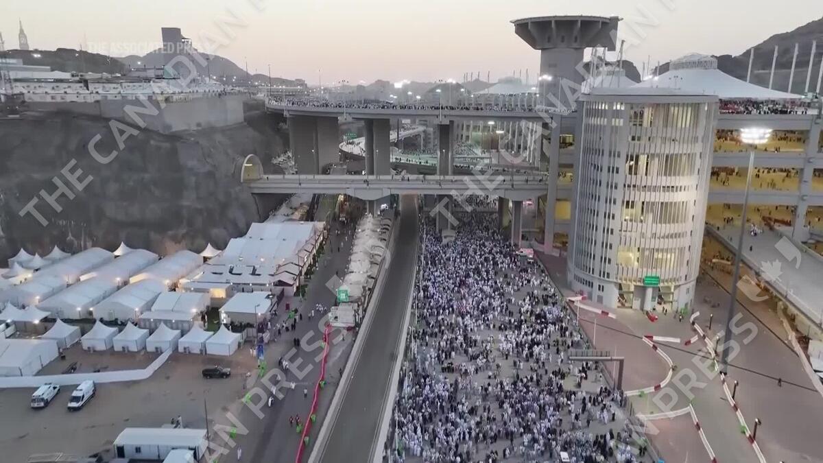 Drone footage released by the Saudi Press Agency showed thousands of Muslim pilgrims on Saturday at the symbolic devil stoning complex in Mina, Saudi Arabia.
