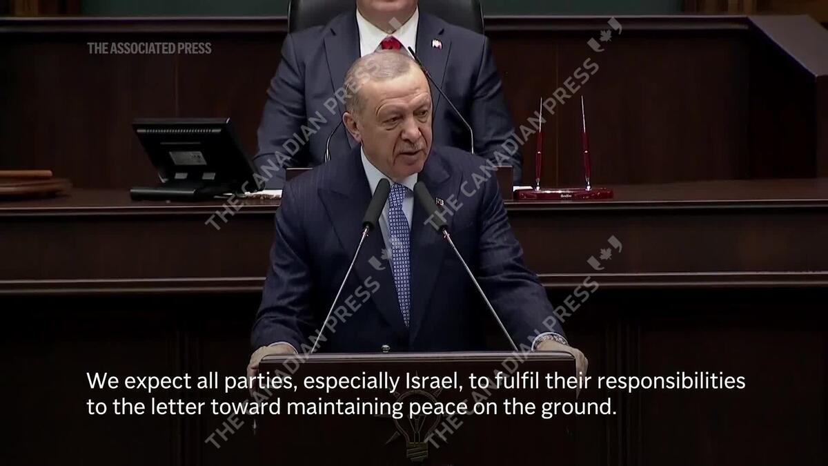 Turkish President Recep Tayyip Erdogan on Wednesday welcomed the ceasefire agreement between Israel and the Lebanese militant group Hezbollah. He said Turkey expects all sides, and especially Israel, to fulfil obligations "toward maintaining peace on the ground."