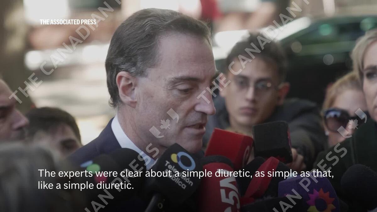 An Argentine court held another day of the trial of seven healthcare professionals accused of negligence in the death of soccer great Diego Maradona at age 60. Outside the court and before the cameras, lawyers exchanged accusations regarding whether Maradona could have been saved if heart care had been provided. (AP Video by Victor R. Caivano)