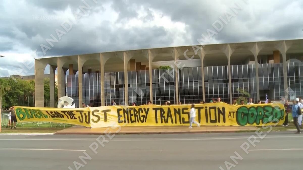 Indigenous people and environmental activists stage a protest in Brazil capital ahead of the country's COP 30 conference. (AP/ Eduardo François)