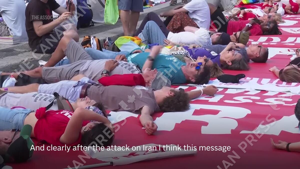 Thousands of demonstrators took to the streets of Rome Saturday, calling for a stop to war and the rearmament policies of Italy and Europe. (AP Video: Paolo Lucariello/Produced by Francesco Sportelli)