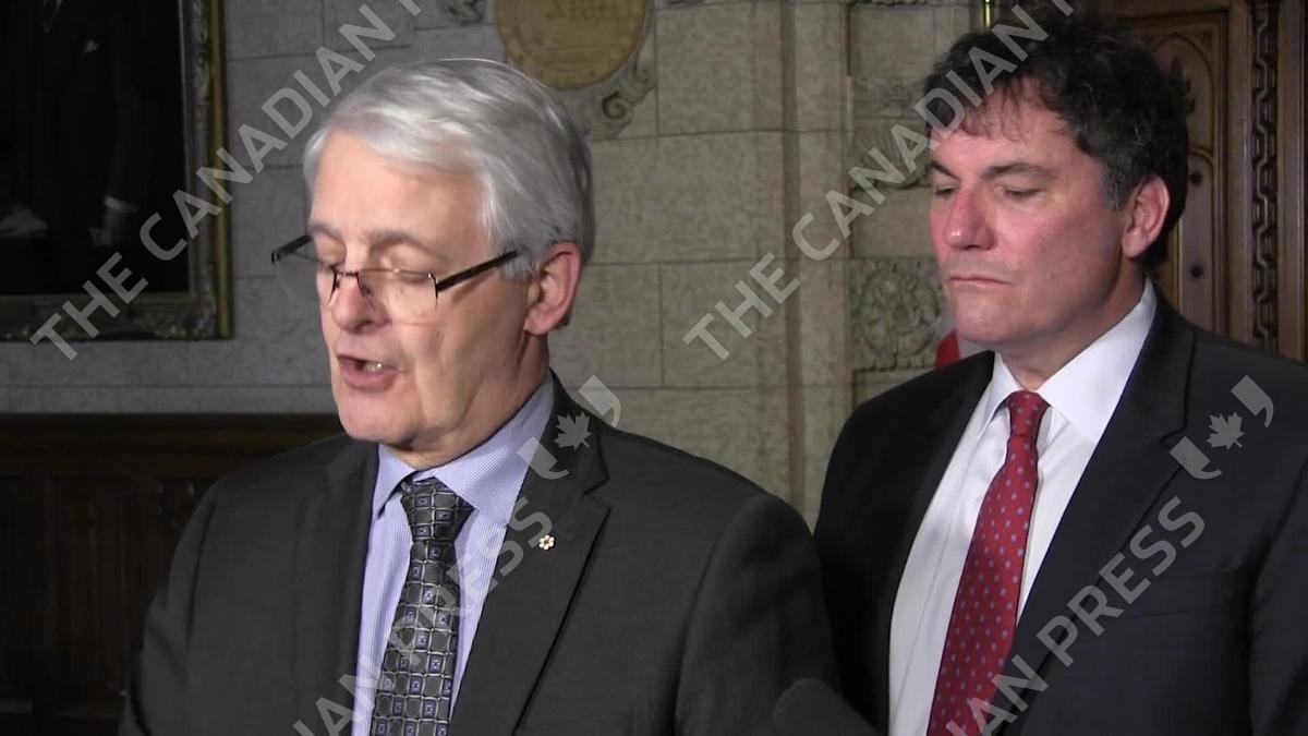 Fisheries Minister Dominic LeBlanc and Transport Minister Marc Garneau announced in Ottawa, Wednesday, March 28, 2018 changes in the dates of Canada's snow crab season and the establishment of a permanent speed limit in the Gulf of St. Lawrence in hopes of protecting the highly endangered North Atlantic right whale. SOUNDBITE: Minister Dominic, fisheries minister SOUNDBITE: Marc Garneau, transport minister PLACELINE: Ottawa CREDIT: The Canadian Press LANGUAGES: English and French
