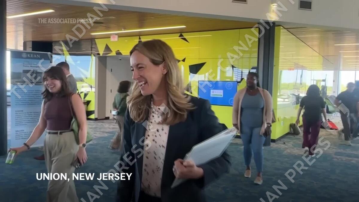 Jack Ciattarelli (R) and Mikie Sherrill (D) rally supporters and share their campaign messages in the New Jersey governor's race, viewed by many as a national barometer on Trump policies. (AP Video/Ted Shaffrey)