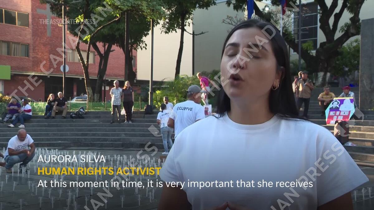 A group of Catholic faithful answered Venezuelan opposition leader María Corina Machado’s call on Saturday to join a “global prayer for freedom” for political prisoners in her country, ahead of the upcoming canonization of Venezuelan physician Blessed José Gregorio Hernández and nun Carmen Rendiles on Oct. 19. (AP Video/Andry Rincón)