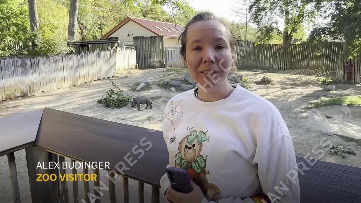 An Eastern black rhino calf born last month makes his public debut at the Cleveland Metroparks Zoo. (AP video: Sue Ogrocki)