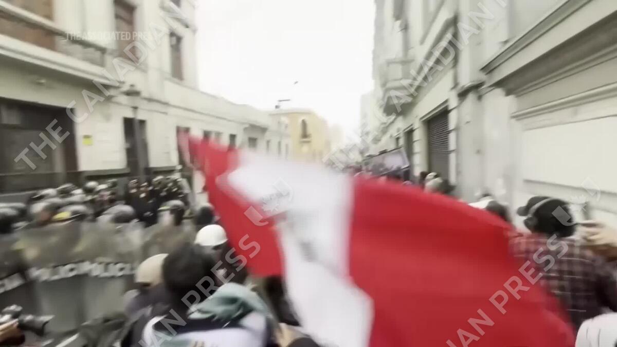 CP175167226 | Protesters and riot police clash as protests in Peru's capital turn violent