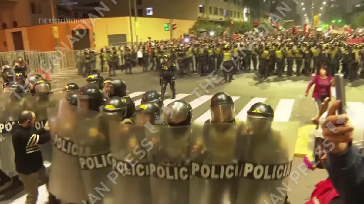 Protesters and riot police clash as protests in Peru's capital turn violent