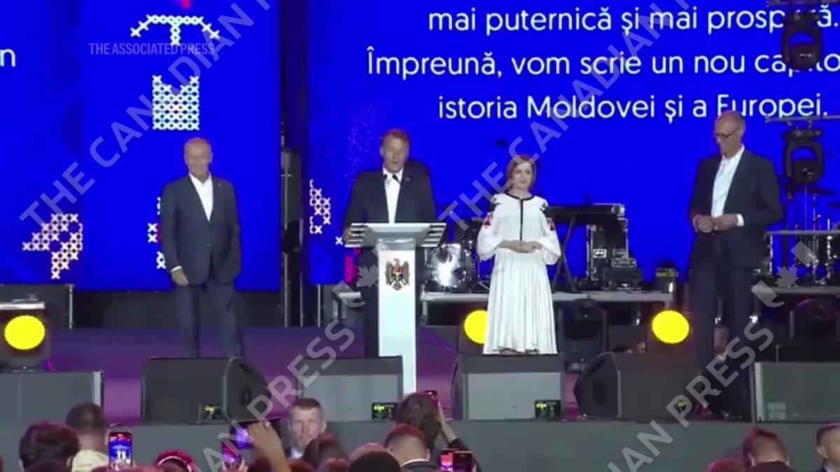 Visiting EU leaders and Marcon speaks at Independence Day rally in Chisinau
