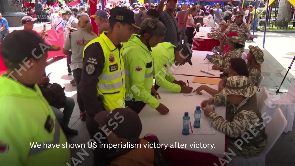 Hundreds of Venezuelans lined up Saturday at plazas and military posts across the country after President Nicolás Maduro called on citizens to enlist and help with security duties. (AP Video: Andry Rincón)