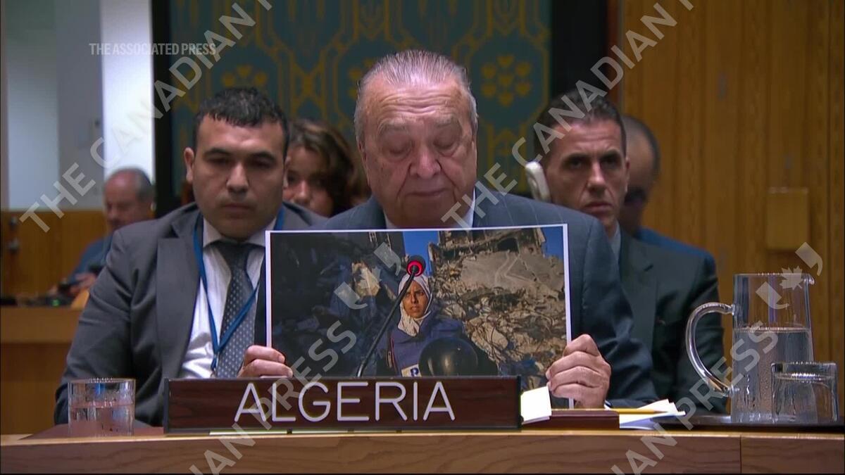 Algeria’s UN envoy reads letter that AP visual journalist Mariam Dagga wrote to her 13-year-old son