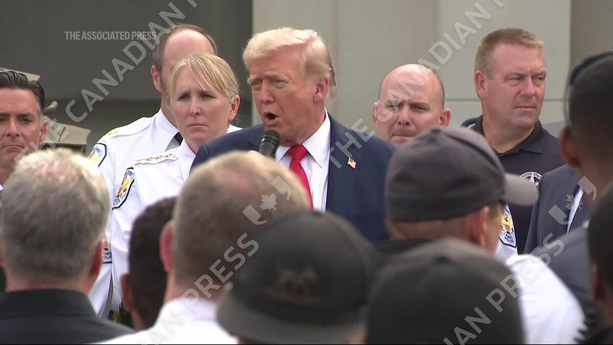 President Donald Trump on Thursday visited law enforcement and National Guard troops in Washington Thursday evening, praising them for their role in his crime crackdown and saying he'll seek congressional funding for his DC intervention and beautification plans.