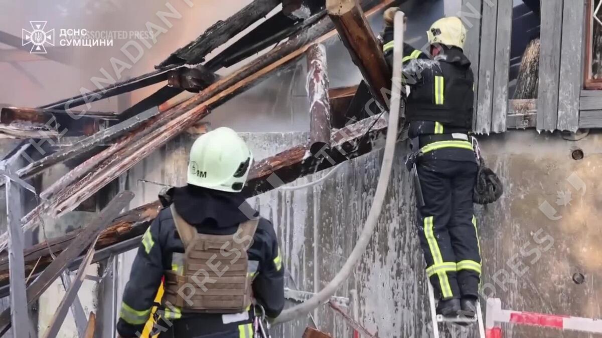 Firefighters battle flames as Russian attack leaves several buildings destroyed in Ukraine's Sumy region