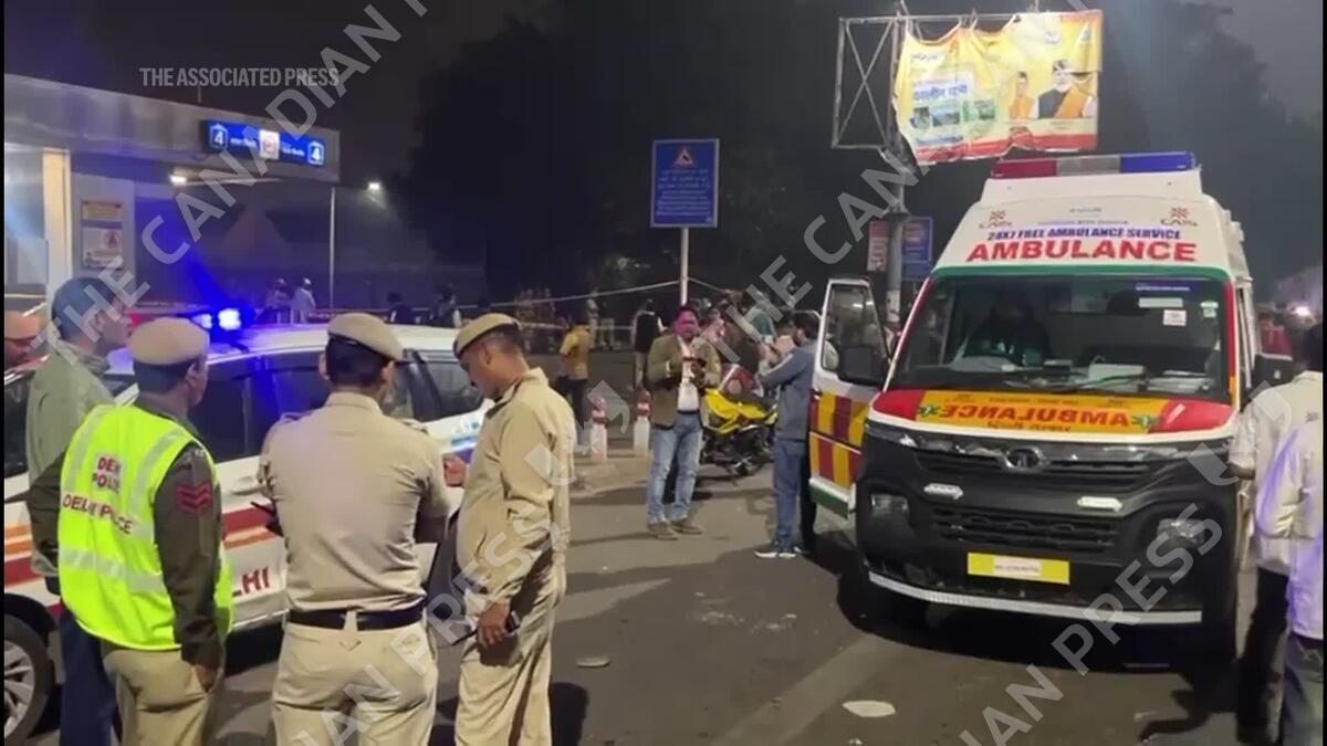 A car exploded near the historic Red Fort in India's capital Monday, killing at least 8 people, injuring several others and triggering a fire that damaged several vehicles parked nearby, New Delhi police said. (AP Video by Piyush Nagpal)