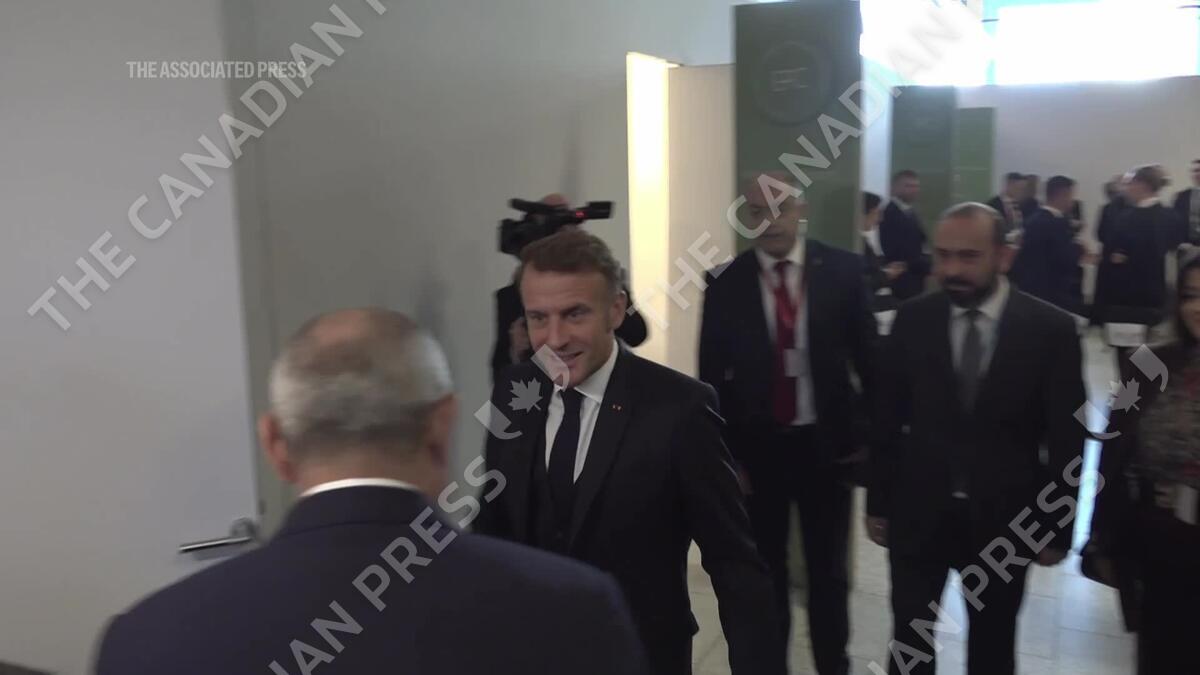 French President Emmanuel Macron met Armenian Prime Minister Nikol Pashinyan in Copenhagen on Thursday morning on the sidelines of the European Political Community (EPC) summit to discuss defense issues. (AP Video by James Brooks)