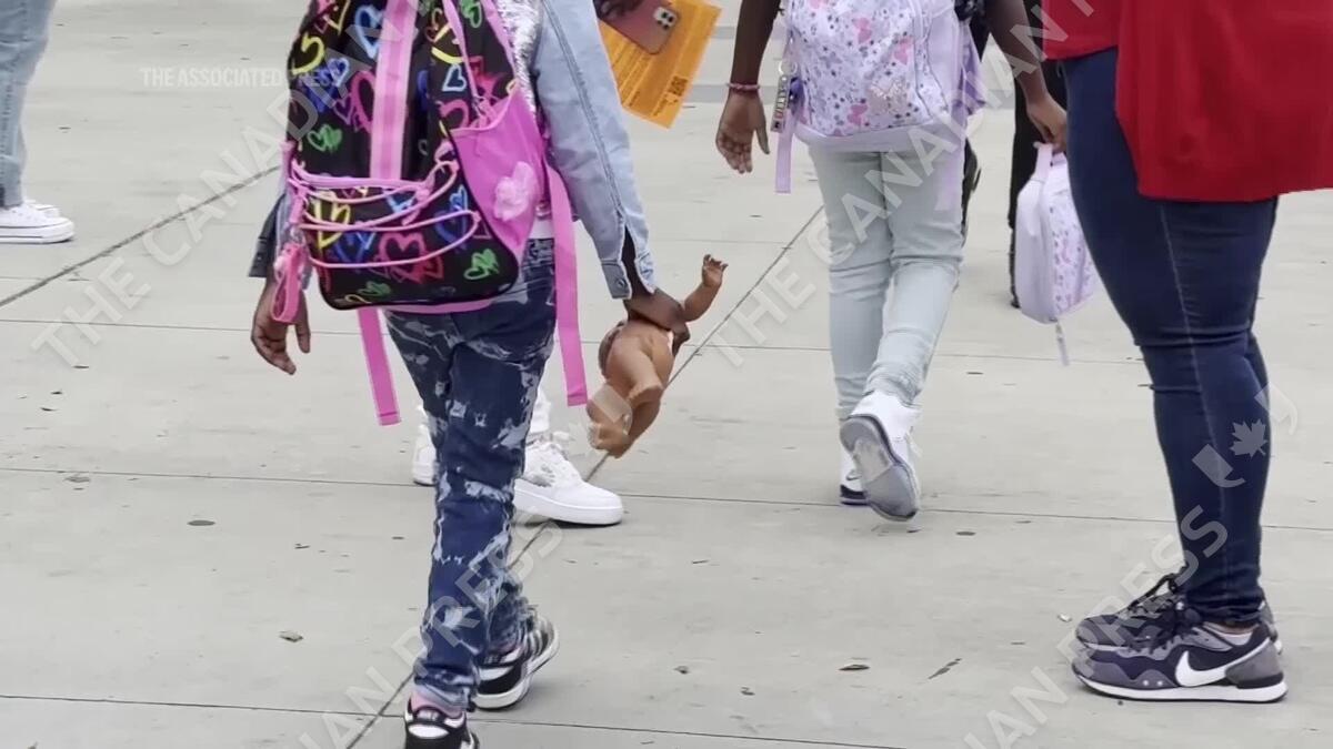 At 93rd Street Elementary School, in Los Angeles, teachers, staff and other volunteers patrolled the neighborhood early before school started to see if there were any signs of federal immigration enforcement or agents in the area.(AP video: Jaimie Ding)