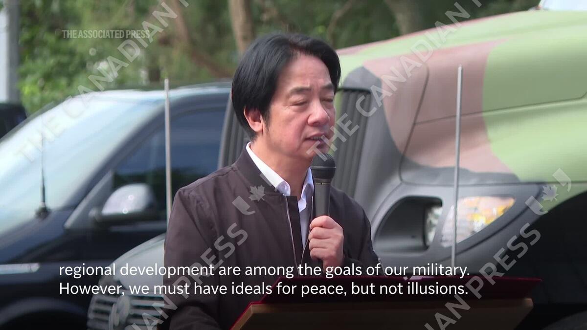 Taiwan's President Lai Ching-te on Tuesday inspected drone operations and combat training conducted by reservists during a visit to a military unit in Yilan. (AP video/Johnson Lai, production/Annika Wolters)