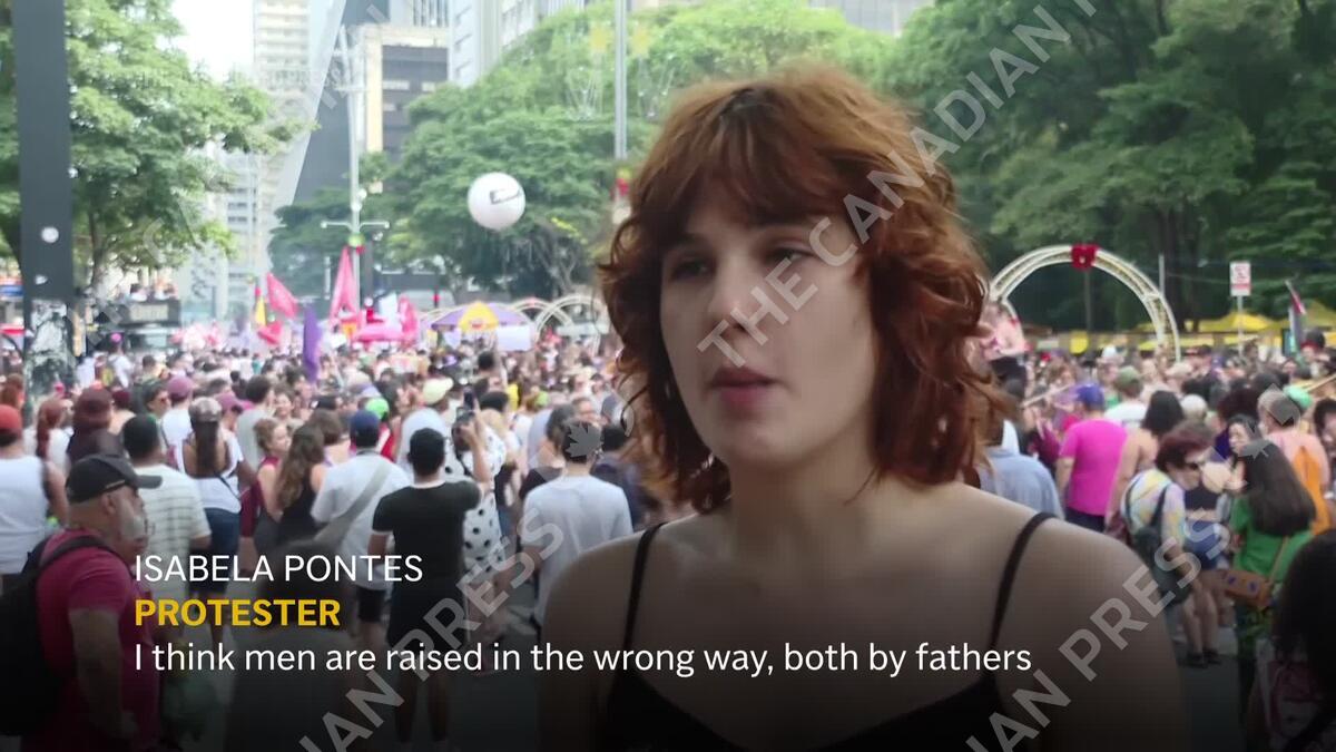 Tens of thousands of women in cities across Brazil rallied against gender-based violence on Sunday amid a series of recent high-profile cases that have shocked the country and sparked fury. (AP Video shot by Thiago Mostazo, Maycron Abade and Diarlei Rodrigues)