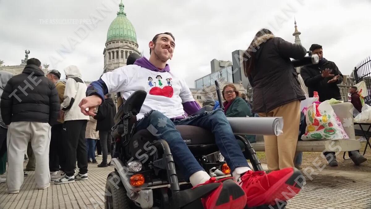 Hundreds of activists and people with disabilities took to the streets of Argentina's capital Buenos Aires on Tuesday to protest President Javier Milei's vetoes on pension and disability spending increases. (Video by Cristian Kovadloff)