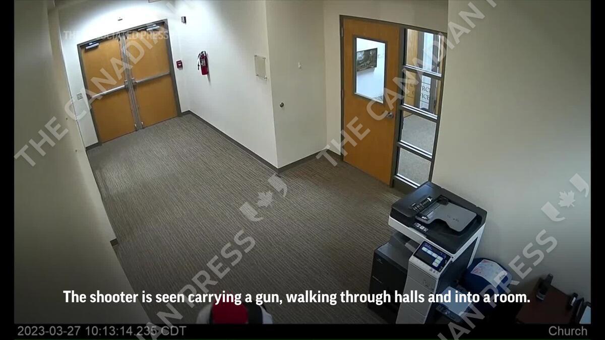 Video released by Nashville, Tennessee police shows the shooter inside The Covenant School, the scene of Monday's shooting. Three adults, three children and the shooter were killed. (March 28)