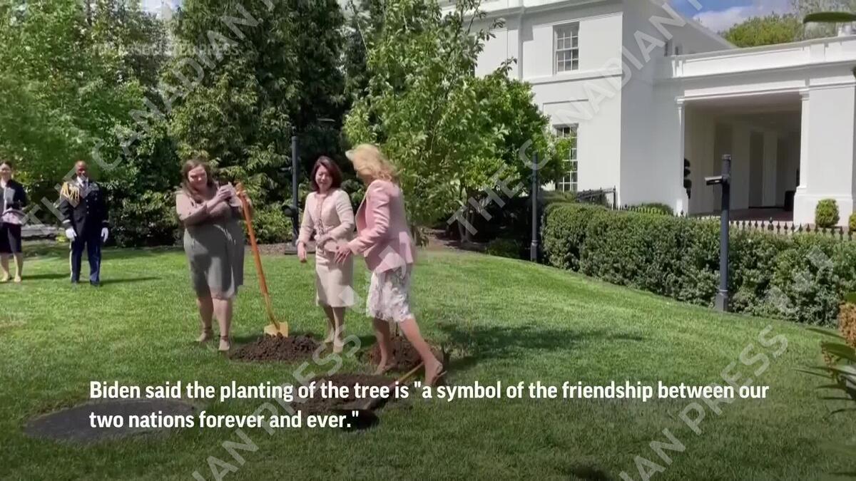 First lady Jill Biden and Yuko Kishida, the Japanese prime minister's wife, planted a cherry tree on the White House grounds to honor decades of friendship between their countries. Kishida is on a rare solo visit to the U.S., invited by Biden (April 17)