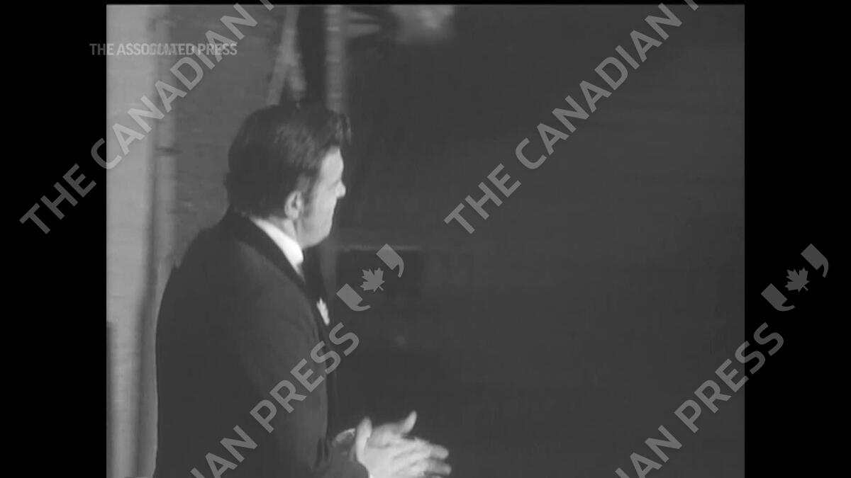 After a twenty-year absence, Charlie Chaplin was in Los Angeles to receive an honorary Oscar at the 44th annual Academy Awards. (April 10)
