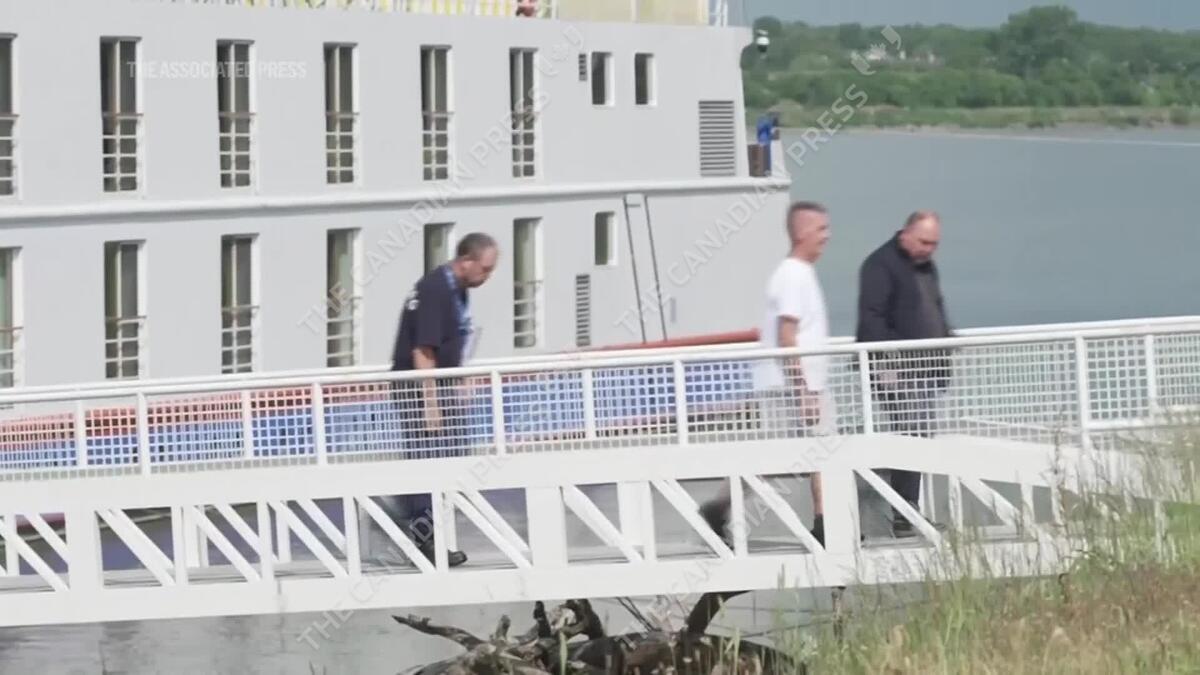 Police said they determined that a river cruise boat had been in the area at the time of the accident. They stopped a cruise boat with a damaged hull near the town of Komarom, more than 50 miles (80 kilometers) further upriver.