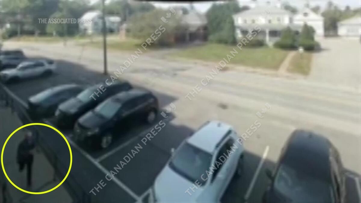 A series of videos show a man convicted of assaulting a child trying to flee a courthouse in Maine on Wednesday, but the escape attempt was quickly foiled by two jurors and a detective. (AP produced by Javier Arciga)