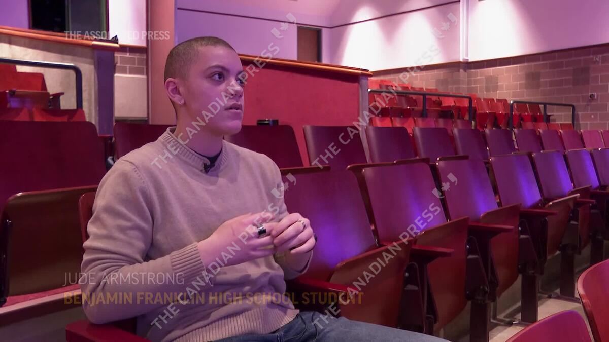 A group of students from a New Orleans high school staged a play they developed on the steps of Louisiana's Capitol to protest a series of anti-LGBTQ+ legislative proposals. (AP Video by Stephen Smith)