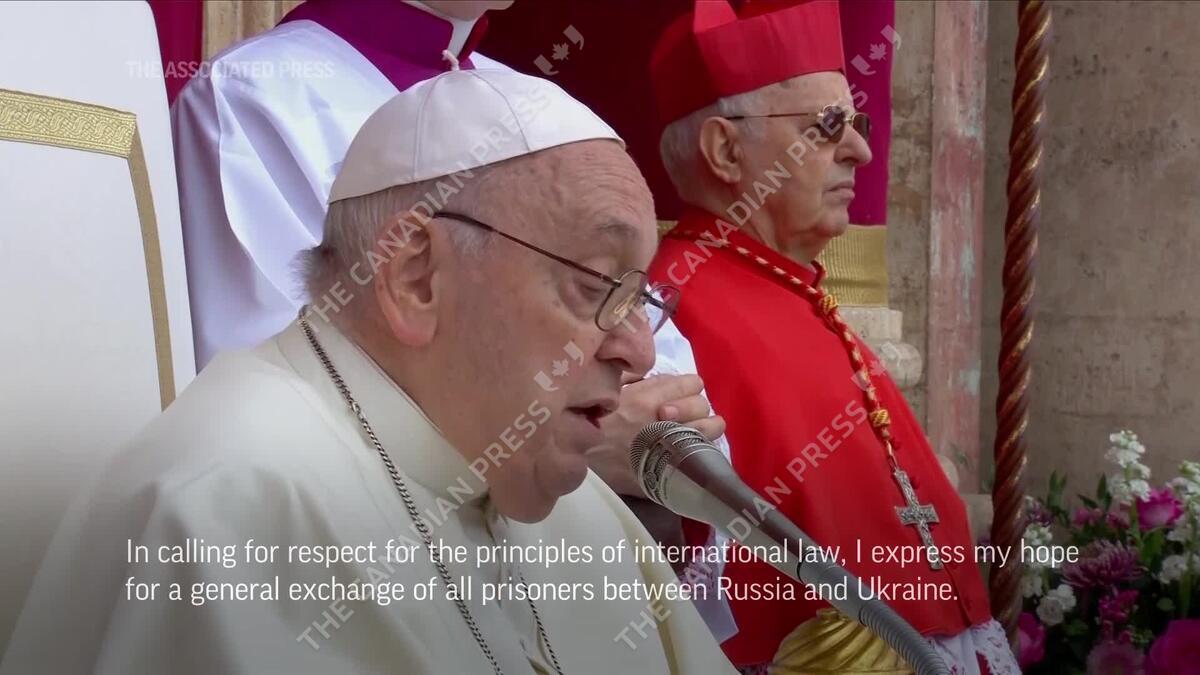 Pope Francis appeals for Gaza cease-fire and Russia-Ukraine prisoner swap in Easter Sunday prayers