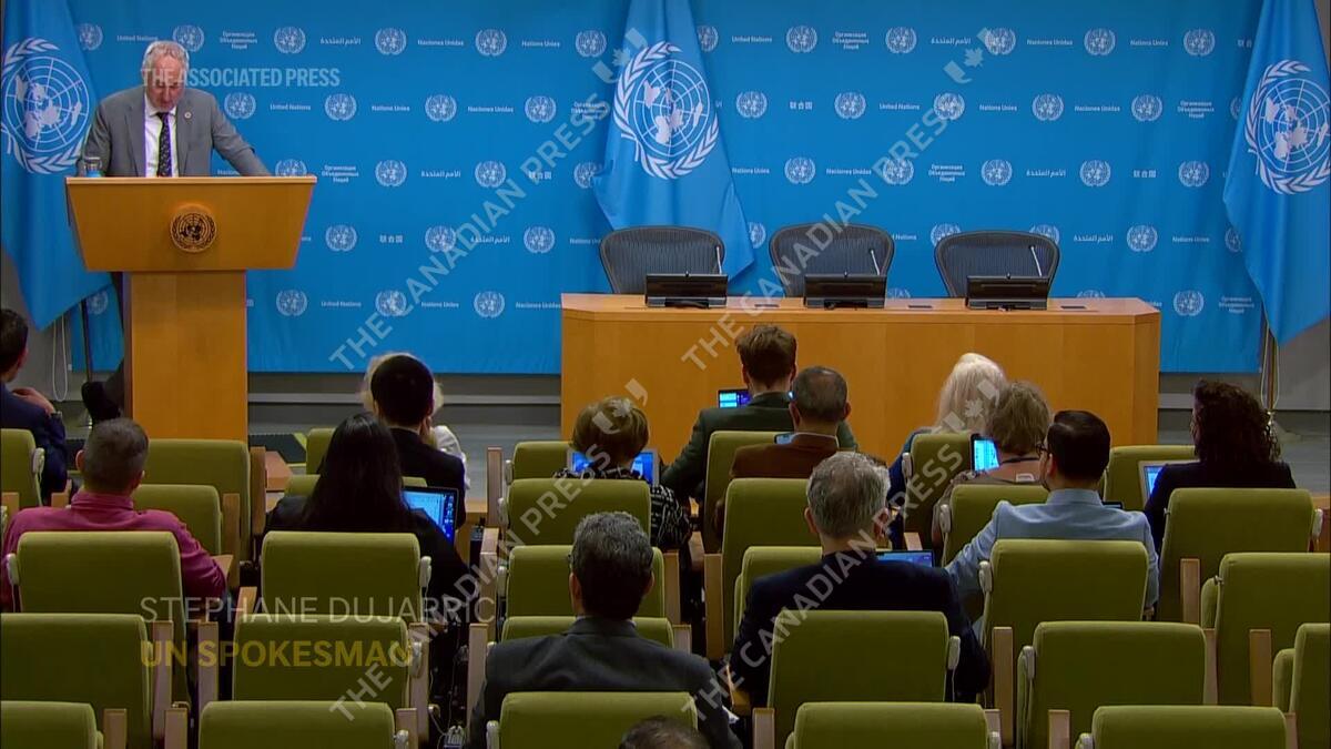 United Nations spokesman Stephane Dujarric called Israeli officials seizing Associated Press equipment in southern Israel "shocking." He added: "The Associated Press, of all news organizations, should be allowed to do its work freely and free of any harassment."