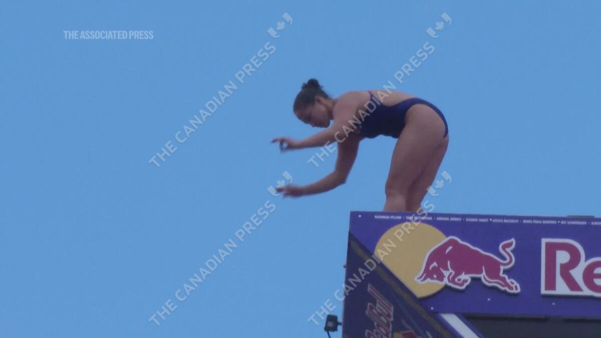 Cliff diving’s marquee event thrilled spectators in Boston as the Red Bull Cliff Diving World Series made the 100th stop in its history. Participants plunged from up to 90 feet into the Boston harbor. (AP Video shot and produced by Rodrique Ngowi.)
