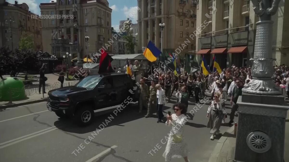 Nearly 1,000 people attended a ceremony Sunday honoring the memory of Ukrainian journalist Iryna Tsybukh, who was killed in action while serving as a volunteer combat medic a few days before her 26th birthday. Tsybukh was killed while on rotation in the Kharkiv area, where Russia started its offensive nearly a month ago. (AP video: Vasilisa Stepanenko)
