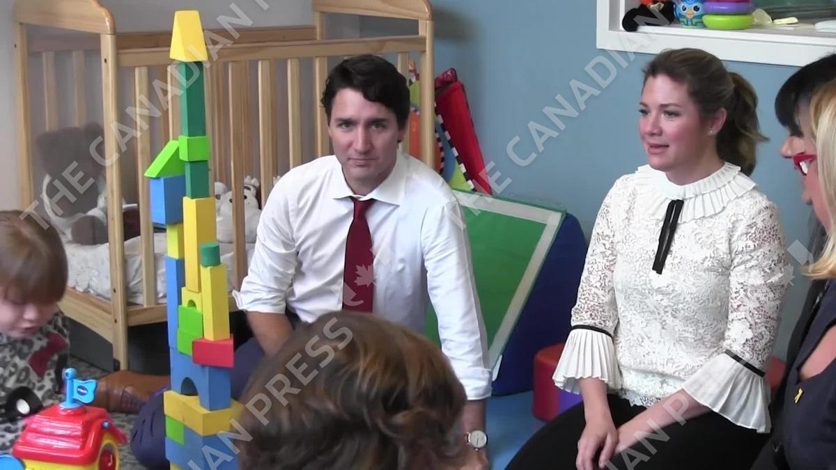 Prime Minister Justin Trudeau visits the YWCA Crabtree Corner Community Resource Centre, in Vancouver, with his wife Sophie Gregoire Trudeau and the CEO of Women Deliver, Katja Iversen, on Wednesday, Nov. 16, 2017.SOUNBITE: Natural sound PLACELINE: Vancouver CREDIT: The Canadian Press LANGUAGE English