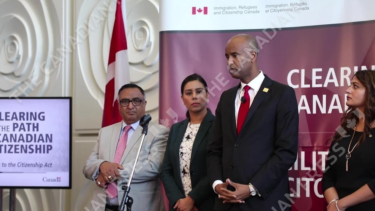 Immigration Minister Ahmed Hussen announced changes to Canadian citizenship rules at an event in Brampton, Ontario, on Wednesday, Oct. 4, 2017. Hussen also took questions on the Somali man accused in recent attacks in Edmonton. SOUNDBITE: Ahmed Hussen, immigration minister PLACELINE: Brampton, Ont. CREDIT: The Canadian Press LANGUAGE: English