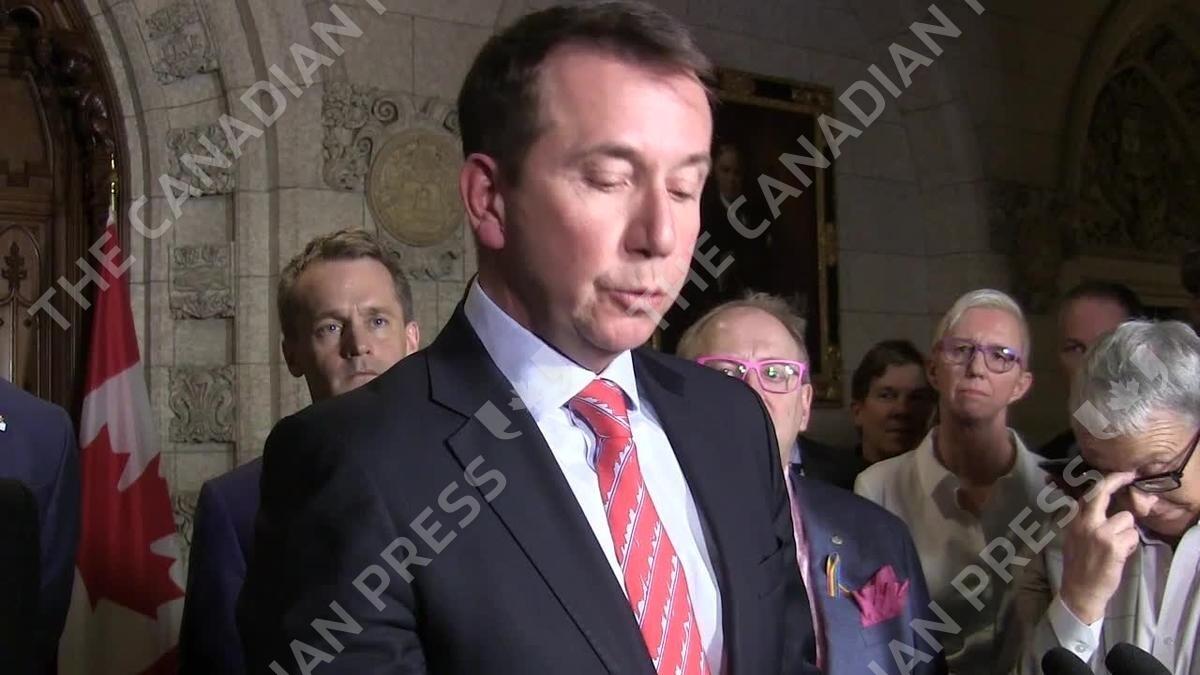 Treasury Board President Scott Brison responds to the government’s formal apology to LGBTQ public service members in Ottawa on Tuesday, Nov. 28, 2017. SOUNDBITE: Liberal MP Randy Boissonnault. PLACELINE: Ottawa, Ontario. CREDIT: The Canadian Press. LANGUAGE: English.